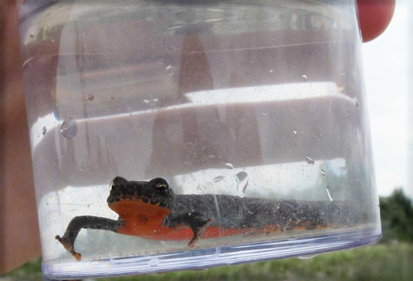 Wir waren mit den Muttenzern zusammen 11 Kinder, die von 4 Leitern betreut wurden. Die Kinder haben einiges über Kreuzkröten und deren Kaulquappen gesehen und die Zusammenhänge erfahren. In den Weihern leben aber auch sehr viele Berg- und Fadenmolche, die zu den Fressfeinden der Kaulquappen gehören. Die Kinder waren mit grossem Eifer dabei.