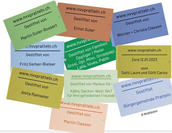 Die von Martin Suter als Ideengeber lancierte Sponsoren-Aktion und von Hansueli Stohler gebauten Nistkästen erfreuen sich immer grösserer Beliebtheit.