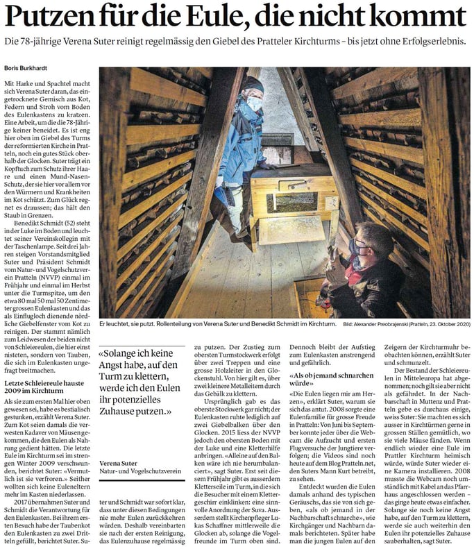 Es sind jetzt 253 Nistkästen, die wir betreuen; da sind die Schwalbennester und Kästen für Mauersegler nicht mitgezählt. Die sind auch schwierig zu zählen, denn Schwalbennester gehen regelmässig kaputt und in den Kästen für Mauersegler wohnen oft auch Spatzen. Überhaupt variiert die Zahl der Schwalben und Mauersegler stark. So sind im Frühling 2020 viele auf ihrem Rückflug in ein Unwetter geraten und gestorben.